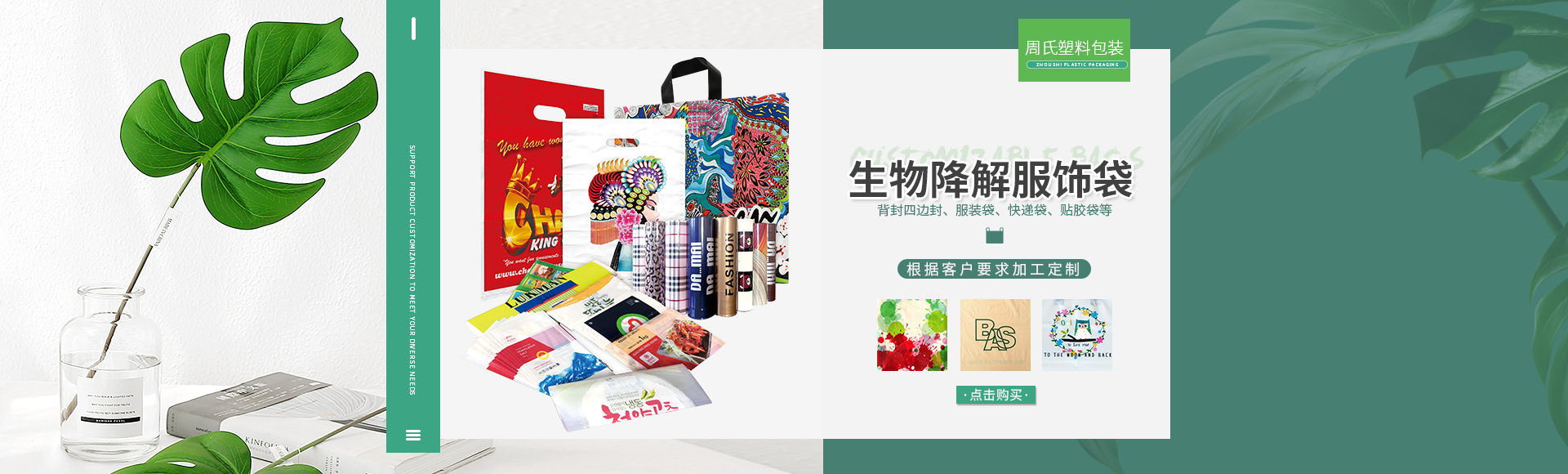 公司主要研發生產全生物降解包裝袋、單一材質復合包裝袋、PLA/PBAT生物降解包裝袋、抑菌除臭袋、商超購物袋、服裝袋、PE平口袋、生物降解奶茶袋、食品用連卷袋、禮品袋、冷凍袋、菌菇培養袋、防靜電袋、屏蔽袋、方底袋、背心袋、異形袋、快遞袋、氣泡袋、防銹袋、抽繩垃圾袋、魚鱗卷抽繩袋、可追溯二維碼垃圾袋、城市分類一袋一碼垃圾袋、食品包裝袋、自立袋、三邊封袋、八邊封袋、真空包裝袋、鋁箔袋、高溫蒸煮袋、冷藏冷凍袋、寵物食品包裝袋、自動包裝卷膜等各種包裝袋。